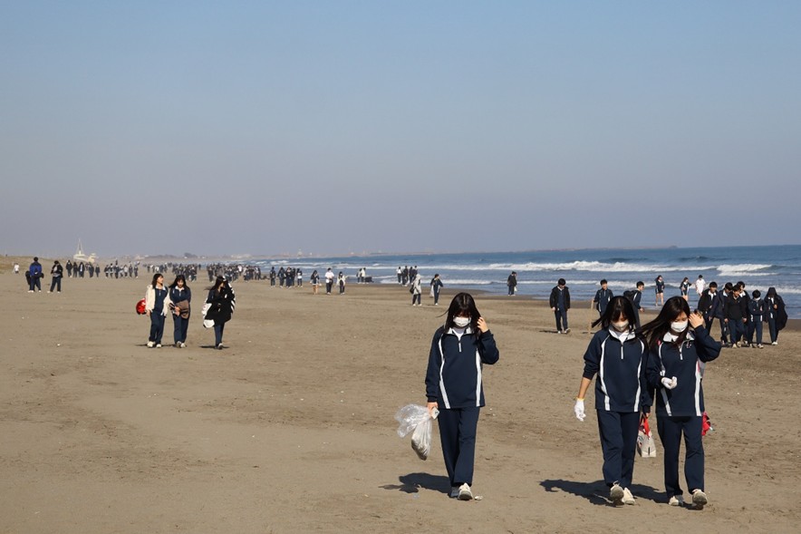 当日の朝、本校より観光バスで九十九里浜白里海岸へ移動し、午前からお昼頃にかけて砂浜を約3km歩きました。好天のもと穏やかな潮風を感じながら級友と足腰を鍛錬し、SDGsの目標14「海の豊かさを守ろう」等を思い出しながらビーチクリーン活動にも汗を流し、社会貢献の喜びを実感した様子でした。