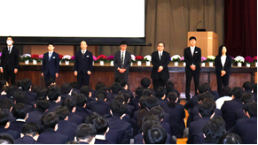 3月2日(月)、高校2年生を対象に新3年始業式が行われました。この行事は、高校2年生が他校に先駆けて3年生に進級することで、進路選択の年であることを自覚し受験生としての意識を高めるために、毎年行われているものです。これから修了式まで、先日卒業した3年生の担任教員が2年生のクラスに入り、進路についてのサポートをしていきます。