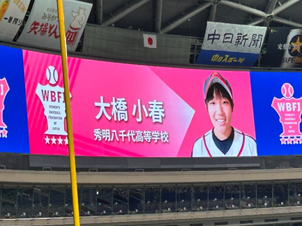 高校3年6組大橋小春さんが高校野球女子選抜として8月31日、名古屋バンテリンドームで行われたイチロー選抜KOBE CHIBENとの試合に出場しました。打席では、セカンドライナーでしたが、イチロー氏の速球を打ち返すことができました。