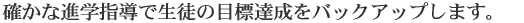入学直後からはじまる緻密で計画的な進学指導や大学受験を意識した質の高い授業、秀明独自のテキスト、ムリ・ムダ・ムラのない学習システム、生徒一人ひとりの学力に合わせた親身な個別指導などにより、入学後の学力を大幅に伸ばしています。多くの生徒は、文科系・理科系を問わず、第一志望の大学へ合格を果たしています。4年制大学への現役合格率は70%を超え、県内有数の合格率を誇っています。 |