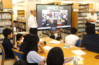 7月17日(木)、中学2年生が、今年度から取り組むアートマイルプロジェクトの最初のオンライン交流会を行いました。アートマイルプロジェクトは、世界中の参加国の中からマッチングされた学校と、SDGsの課題の中から1つを選んで解決する方法を考え、共同で壁画を作成する取り組みです。本校はインドの中学校と1年間活動をすることになり、今回はその準備として、ZOOMで自己紹介・お互いの国や地域についての紹介・質疑応答を行いました。英語でのやり取りとなりましたが、日ごろの英語学習の成果をいかんなく発揮することができました。
